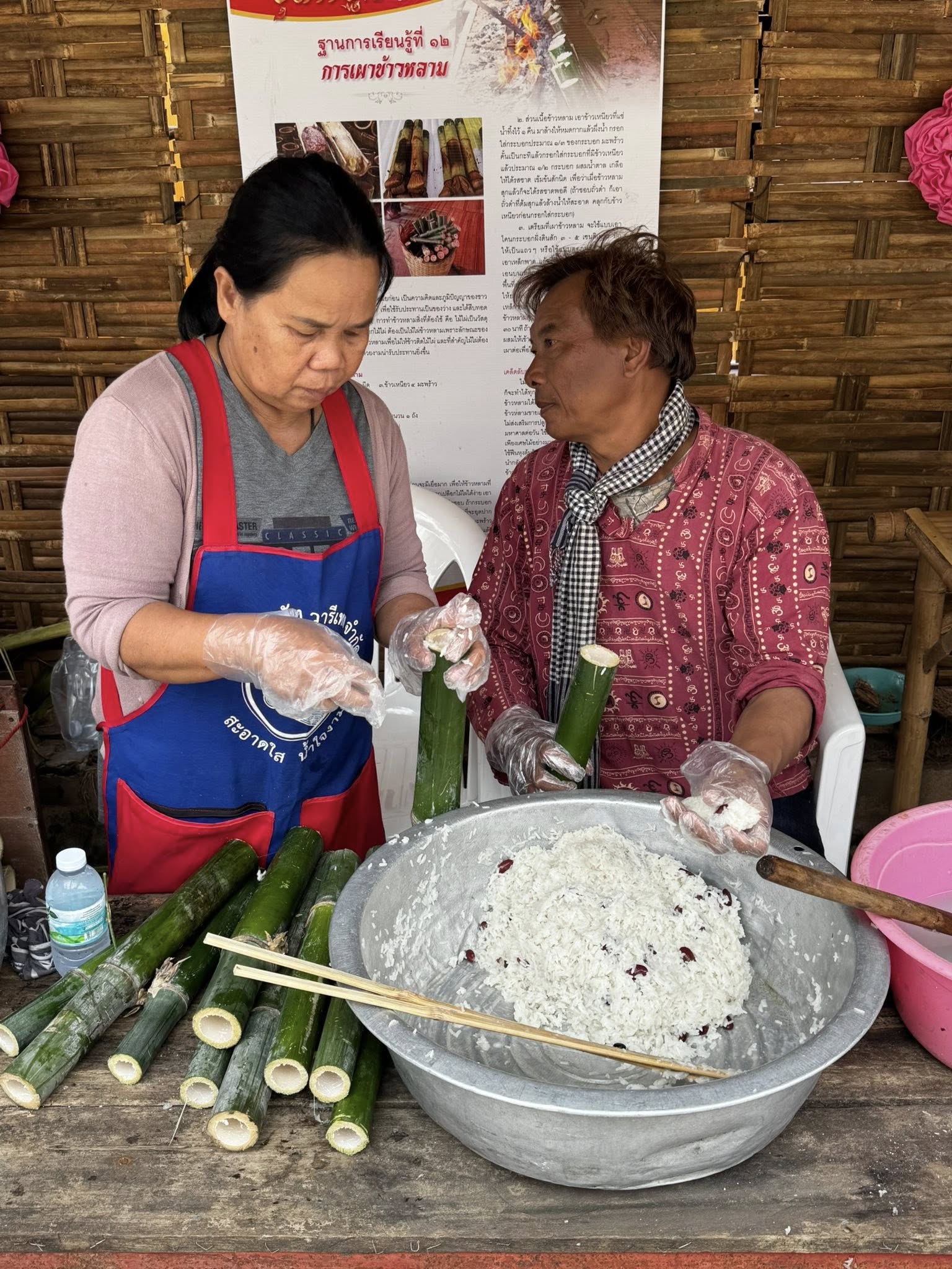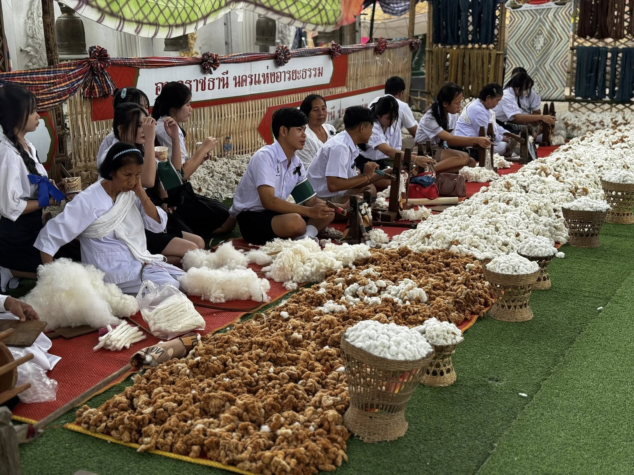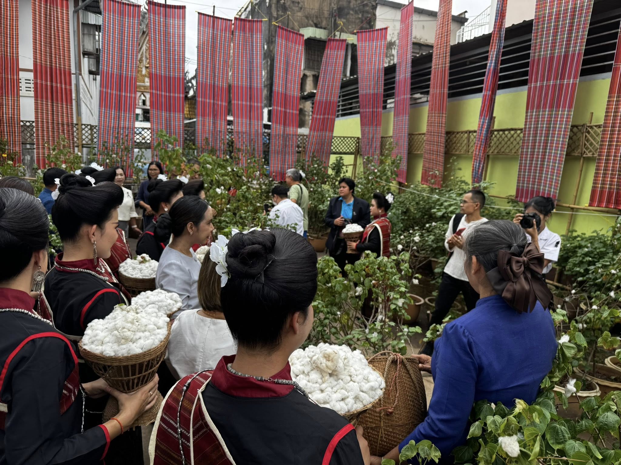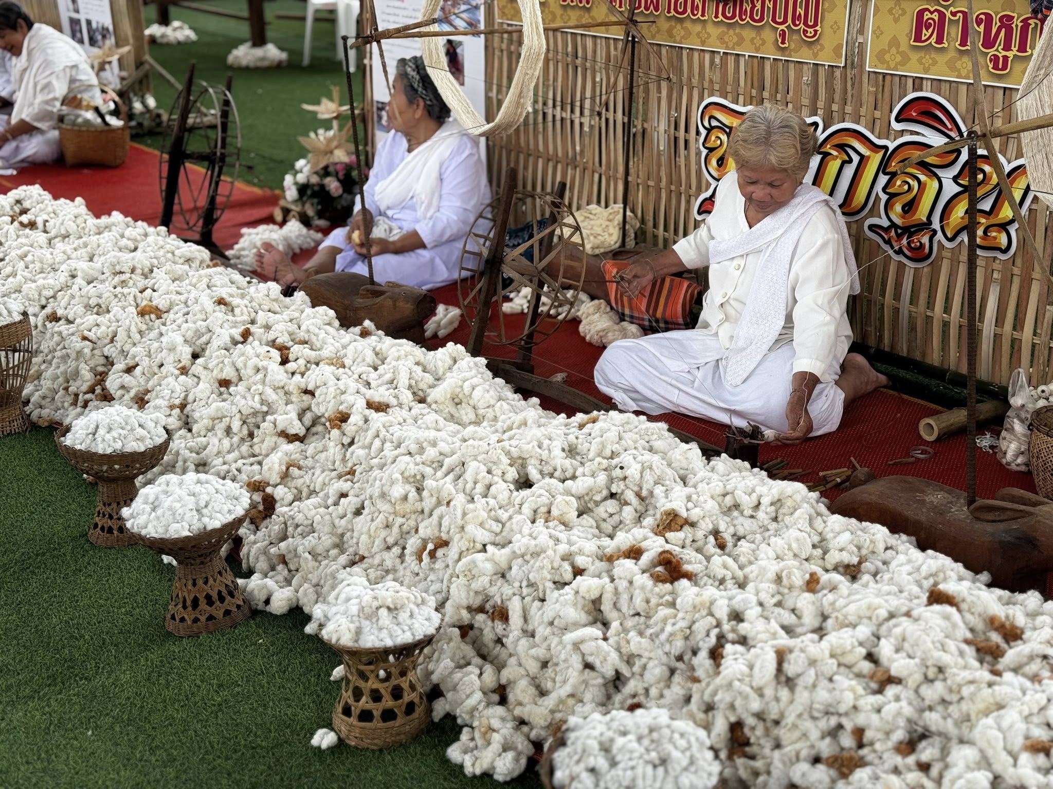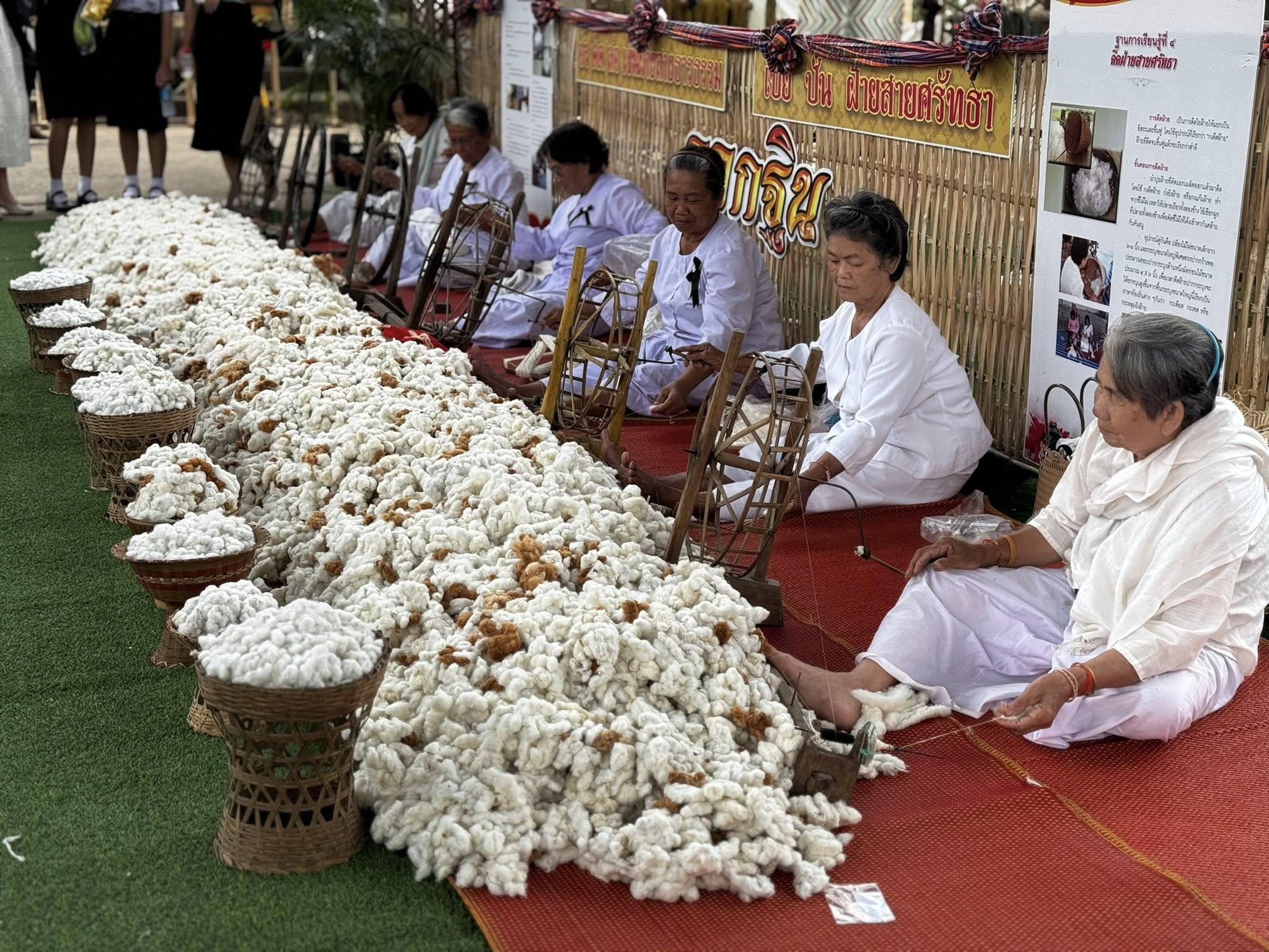 ญาติโยมจากคุ้มต่างๆ หลั่งไหลมาร่วมโฮมงานบุญจุลกฐิน ทั้งการเก็บฝ้าย การเตรียมปั่นด้าย ทอผืนผ้า ย้อมผ้า และตัดเป็นจีวร เพื่อให้ทันถวายเป็นผ้ากฐินในเช้าวันรุ่งขึ้น รวมทั้งมีการจัดนิทรรศการถวายพระเกียรตฺแด้สมเด็จพระราชชนี พันปีหลวง การให้ความรู้/แสดงกิจกรรมการเผาข้าวหลาม ปิ้งข้าวจี่ และมีโรงทานอาหารมากมาย